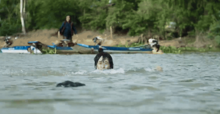 Trong phân cảnh hỗn loạn giữa sông, Gọn bị hút vào dưới một chiếc sà lan. Hình ảnh ông Nháy bị siết cổ cũng đặt ra nhiều câu hỏi.